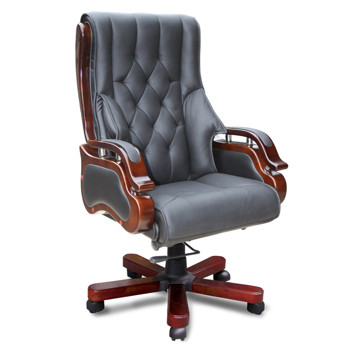 được làm hoàn toàn bằng chất liệu da cao cấp, chân thép ốp gỗ tự nhiên có bánh xe, đệm tựa mút bọc da thật bề mặt đệm tựa, phía sau và 2 bên cạnh ghế bọc da công nghiệp , với các đường may trang trí, tay gỗ tự nhiên ốp da 2 tầng, bát điều chỉnh độ cao cần hơi và độ ngả của ghế mang lại sự sang trọng cho văn phòng và tiện nghi thoải mái tối đa cho người sử dụng.